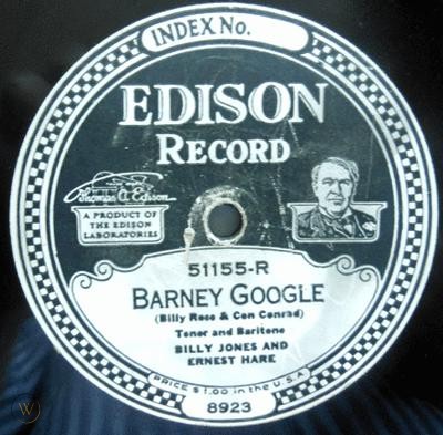 Barney Google, Edison Diamond Disc Record by Billy Jones and Ernest Hare (Old King Tut released in June 1923 was on the flipside - see Phonographia's Tut-Mania for more Tut phonograph ephemera)