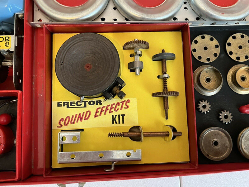 Note: Mr. Byron described watching an episode of Mr. Wizard as the source for his instructions on how to build a phonograph out of an Erector Set, poster board, and a hatpin. However, there was also an A. C. Gilbert Erector Set that included the pieces and instructions for making "a Real Working Record Player" (i.e., Gilbert's The Musical Ferris Wheel Set). "The Musical Ferris Wheel" Erector set is included in Phonographia's collection of toys for its connection with the phonograph.