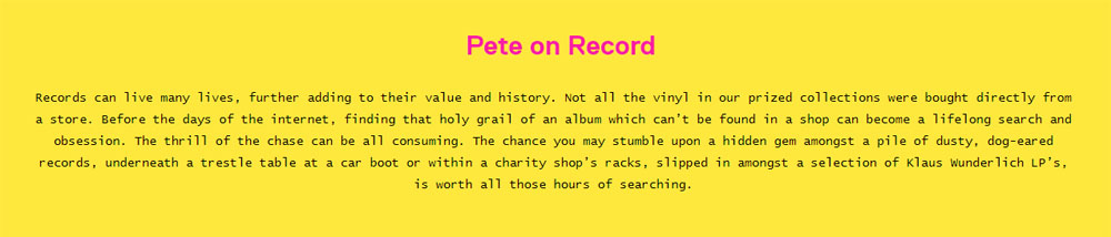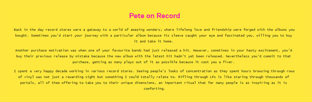 The following are some observations by Pete McKee about vinyl, record stores, the life of records, DJs, and music used in his 2021 Thud Crackle Pop Digital Remaster Exhibition.