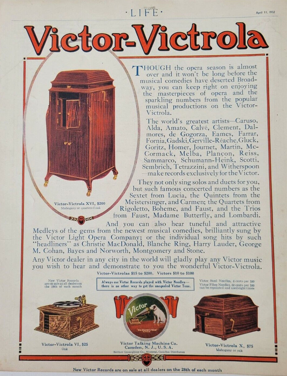 masterpieces can still be enjoyed on the Victor-Victrola, Life,