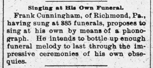 at his own funeral by means of a phonograph.