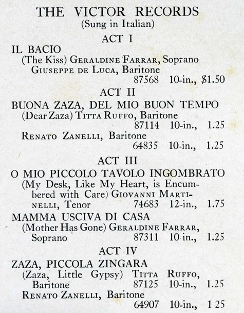 the marketing of the respective Victor Opera Records appeared