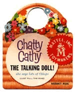 By 1892 lack of sales and too many returns ended production of Edison's talking doll. Though not a commercial success, the Edison Talking Doll is still deservedly the first inductee of the Talking Toy Hall of Fame. Talking toys is the theme of this gallery and the Talking Toy Hall of Fame is one of the reasons for creating Phonographia as a web site. Following in the footsteps of Edison's talking doll there are a number of talking dolls that had records and small phonographs in their bodies. Even Chatty Cathy talks by means of a record and a phonograph mechanism. Talking dolls, however, are not the only talking toys in the Talking Toy Hall of Fame. With the advent of magnetic tapes and electronic chips, toys that talk continue to provide much amusement using new technologies. Perhaps to the disappointment of the purists, several charter member inductees of the Talking Toy Hall of Fame are non-phonograph toys. As curator, I can only urge tolerance, as the Talking Toy Hall of Fame does not discriminate between talking toys. Edison, Mattel, Kenner, Worlds of Wonder, Ideal, Thinkway -- all are welcome. Nominees just need to state their case, preferably after their string is pulled or their crank is turned. |