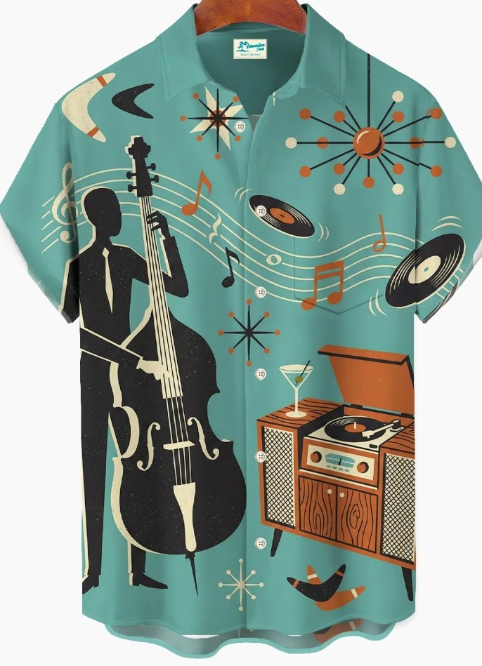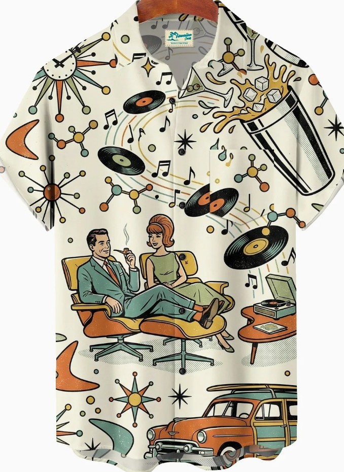 1960's Mid Century Record Atomic Cocktail Shirt, Royaura 2026.
