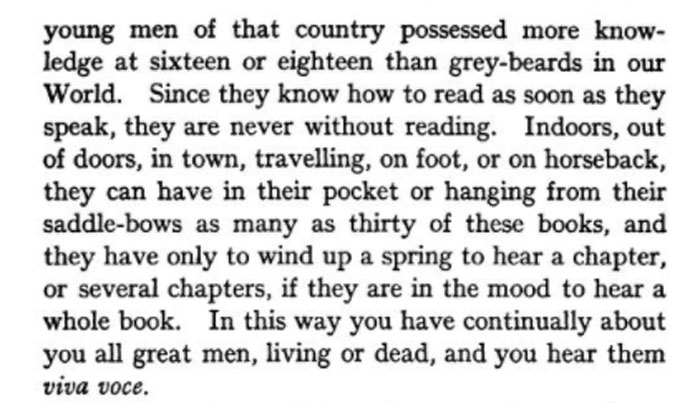 Here's how Daniel Marty summarizes Cyrano de Bergerac's literary prediction of the phonograph as invented by Moonmen and described in Bergerac's Voyage to the Moon (published posthumously in 1657). The following comes from page 10 of Daniel Marty's The Illustrated History of Phonographs. (1)