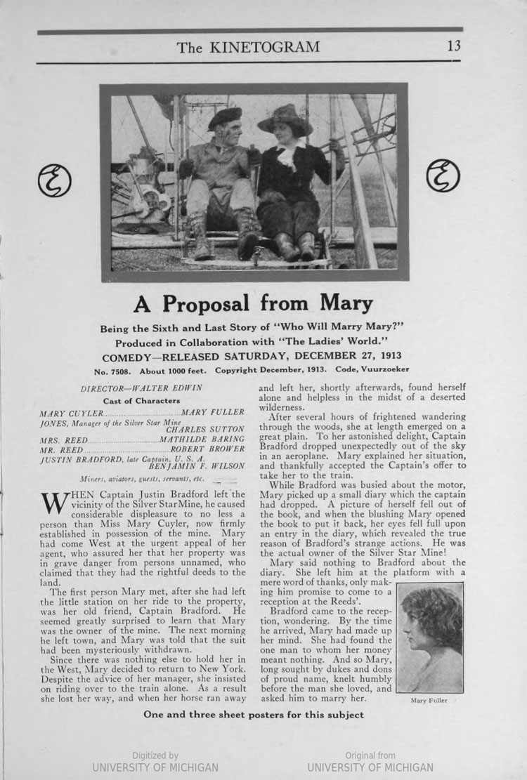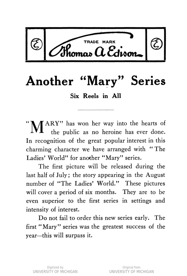Marry Mary?" episodes to be made by Edison, "The Kinetogram,"