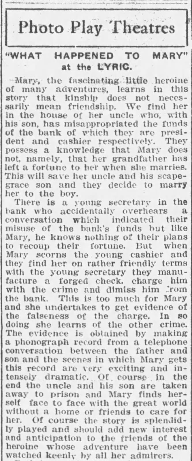 to Mary" which was showing in January 1913 at Lincoln, Nebraska's
