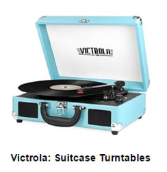 I recently received a BED BATH & BEYOND catalog in the mail and saw the above ad for a Victrola™ portable turntable.