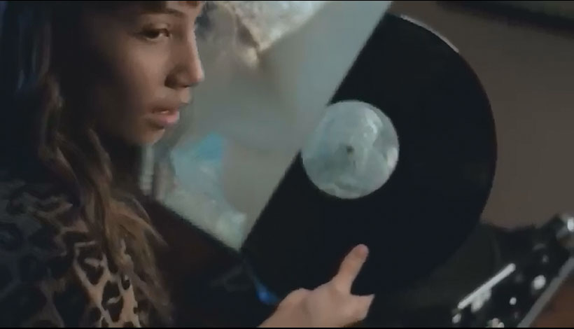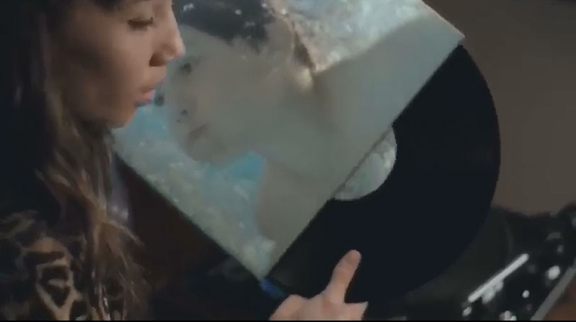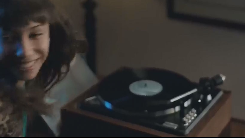 For Friends of the Phonograph, the flashback scene of playing a record player is the best 4 seconds of the Nissan commercial. Note the boy on the album cover is the image from the previous scene of the boy cannon-balling into the swimming pool. There is an historic relationship between a photo album and a record album but this scene goes one step further, nicely combining those two worlds and transitioning an image into a record album and then playing his "record" on a phonograph.