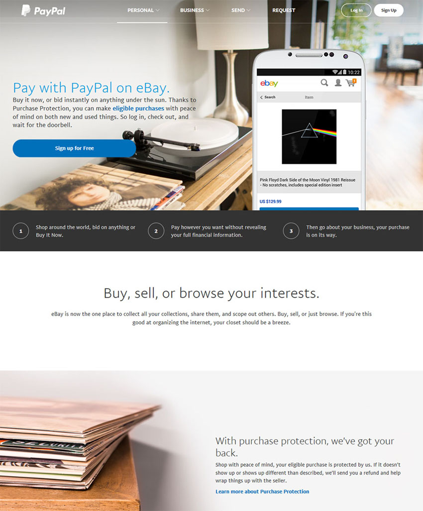 In presenting the advantages of using PayPal to buy items on EBay, notice that the examples of how to buy on Ebay utilize Phonographia and Smartphones:
