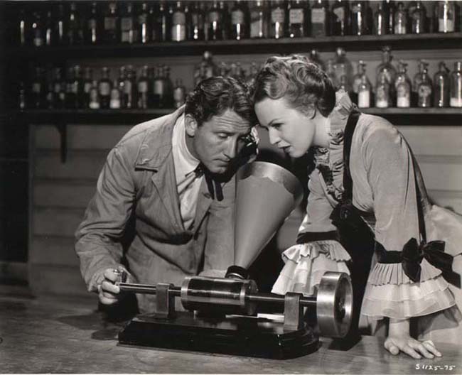 phonograph, Spencer Tracey and Rita Johnson in movie Edison, the Man