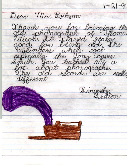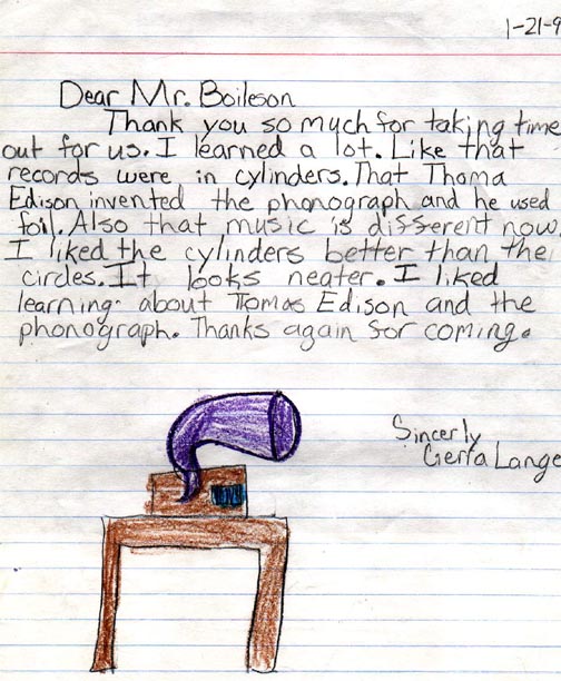Lange, 2nd grader learns about the phonograph |
