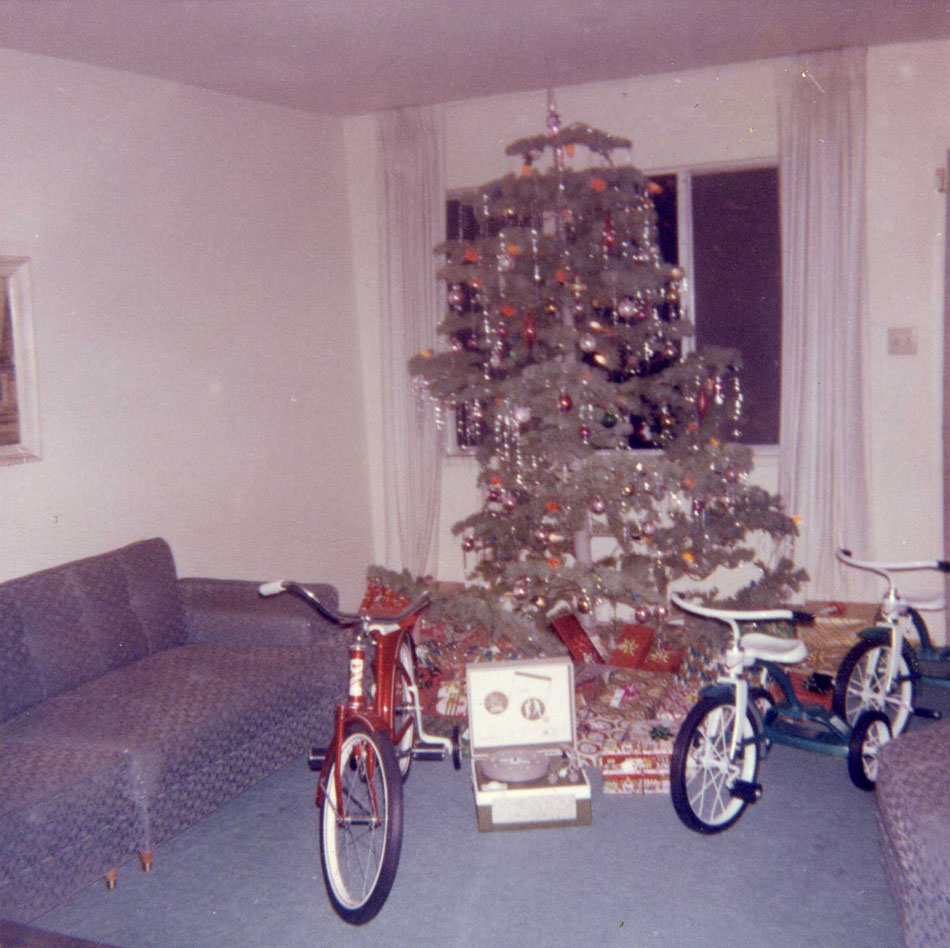 When Christmas morning came and we went into the living room to see what Santa had delivered there was Kathy's portable record player sitting under the tree.