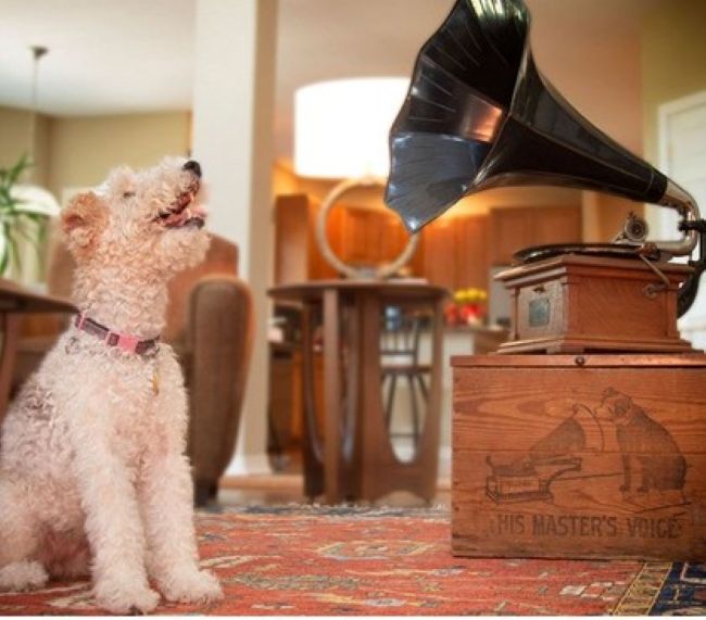 Matt presenting his artistic gift for the Phonograph's 113th Birthday. Matt wrote: "To Edison from Matthew - This is my Dad" (mixing it up with Victor's Nipper and "His Master's Voice").