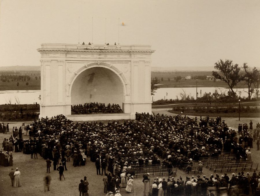 Band Stand on Grand Plaza looking east, (Rinehart, Ibid., UNL-Libraries).