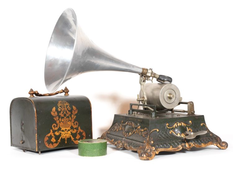 Pathe Model G Exhibitor's Cylinder Phonograph w/Nickel Hunter's Horn, 1899 offered by Pathe Freres in Paris. (Courtesy TechnoGallerie).