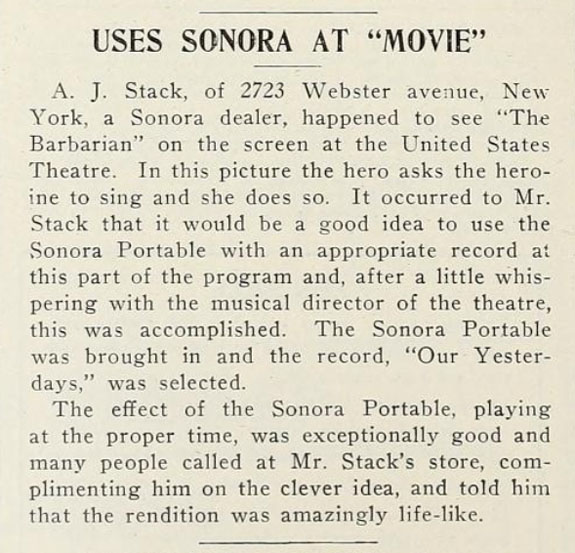 a Sonora Portable to a theatre to use in the movie "The Barbarian"