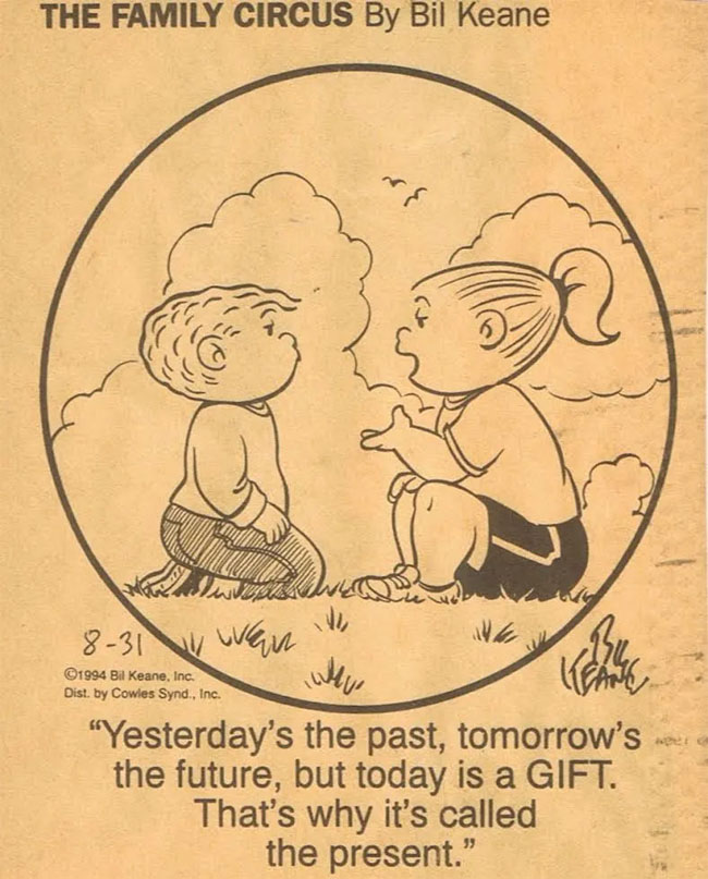 the past, tomorrow's the future, but today is a gift. That's why it's